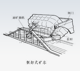 單側曲軌側卸式礦車 簡稱曲軌側卸礦車,是在礦車行進過程中,由卸載輪臂經過卸載曲軌來實現車箱自動傾翻卸料和自動復位。MCC單側曲軌側卸式礦車效率高、安全可靠。